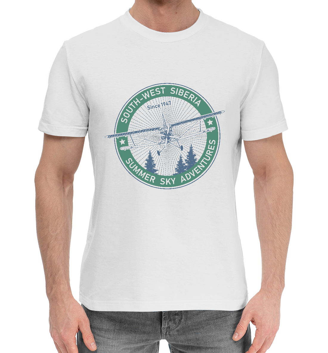 Мужская хлопковая футболка с принтом «Приключения в Сибири»