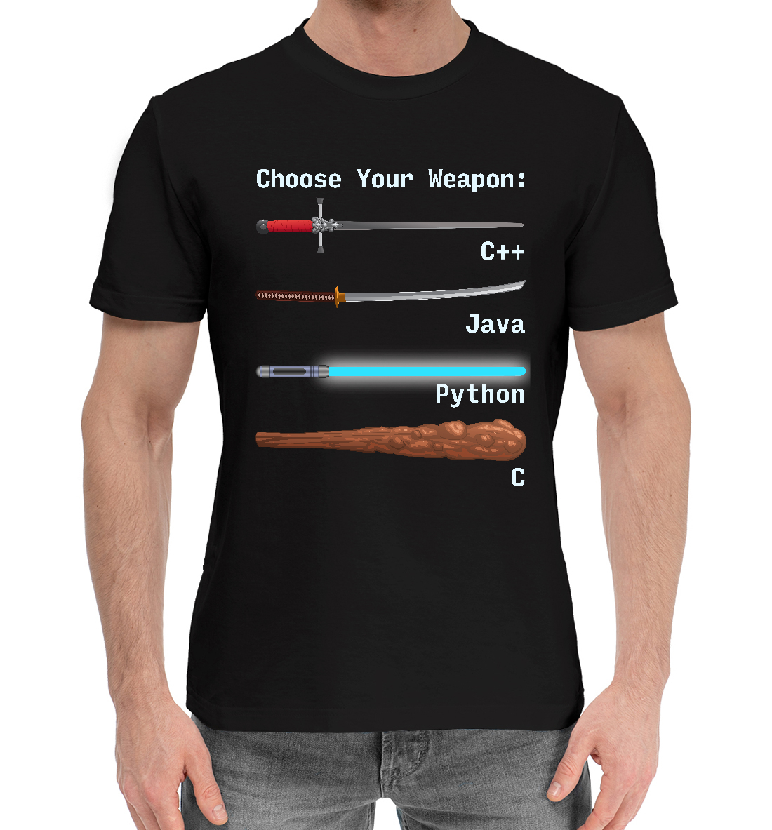 Мужская хлопковая футболка с принтом «Python C Plus Plus Java C»