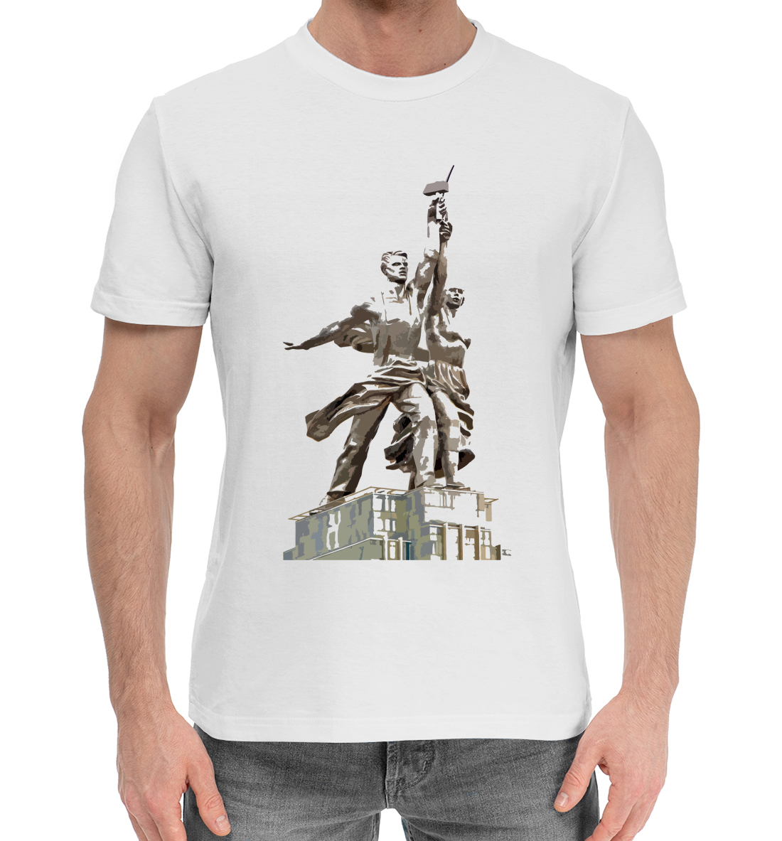 Мужская хлопковая футболка с принтом «Рабочий и Колхозница»