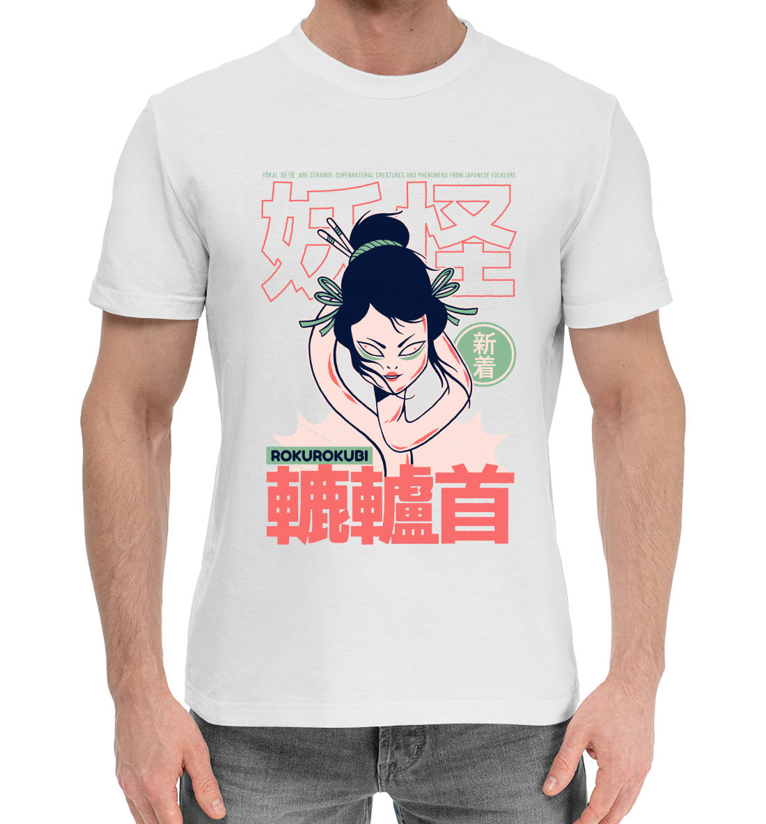 Мужская хлопковая футболка с принтом «Рокурокуби Ёкай»