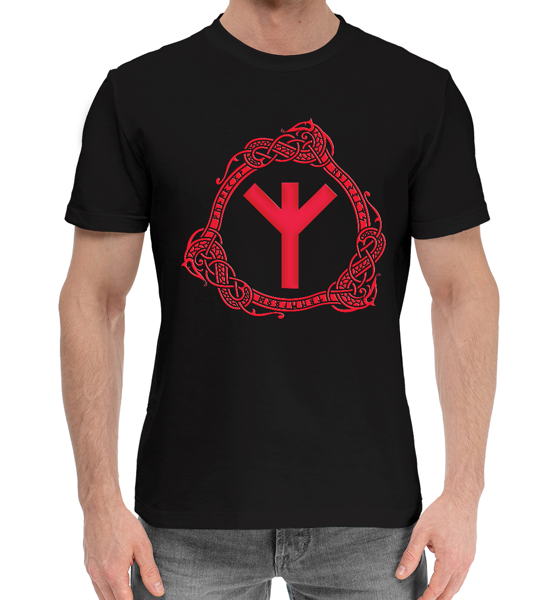 Мужская хлопковая футболка с принтом «Руна Альгиз на чёрном»