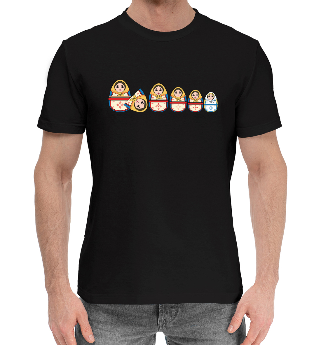 Мужская хлопковая футболка с принтом «Русские матрешки»