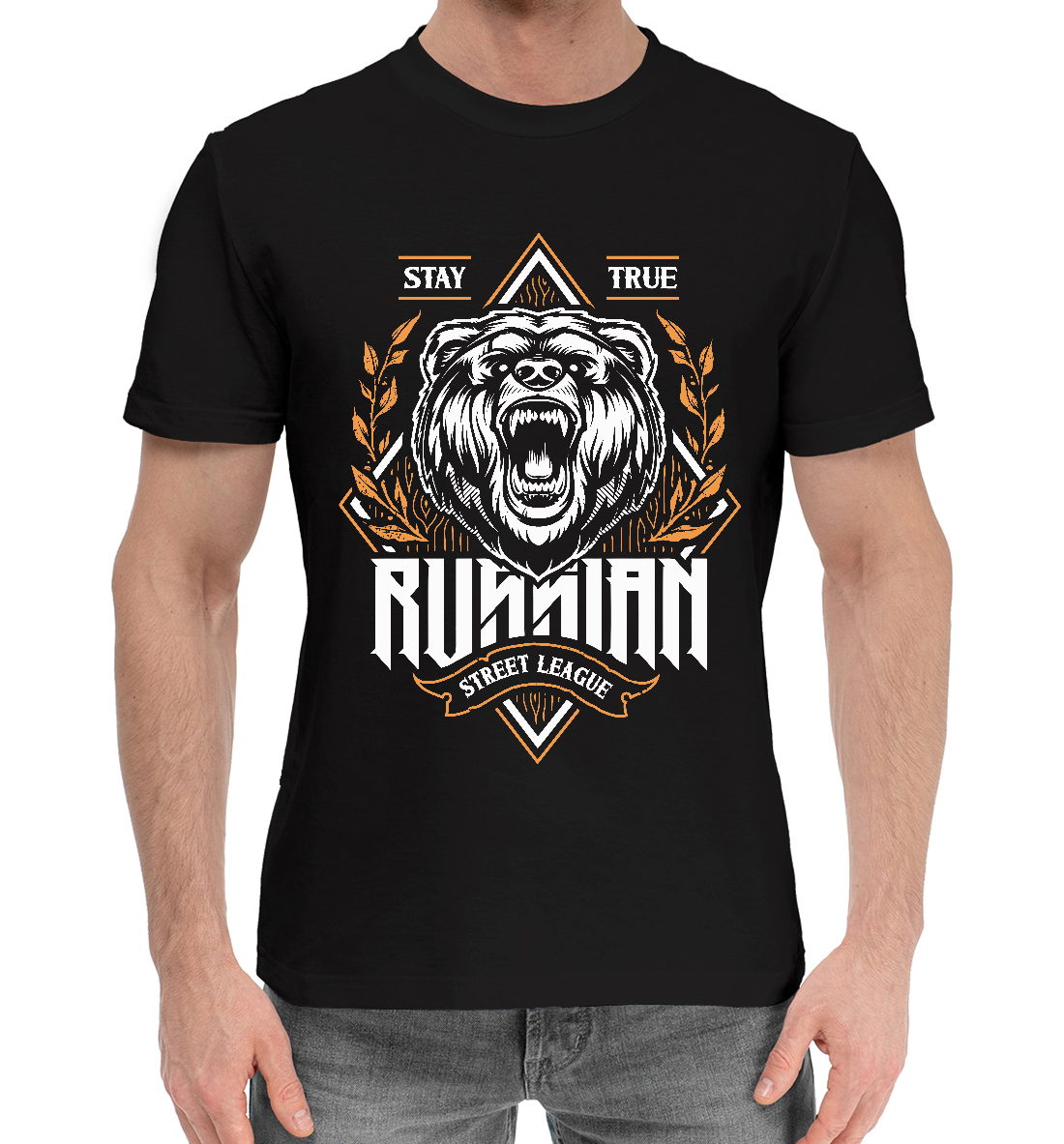 Мужская хлопковая футболка с принтом «Русский медведь»