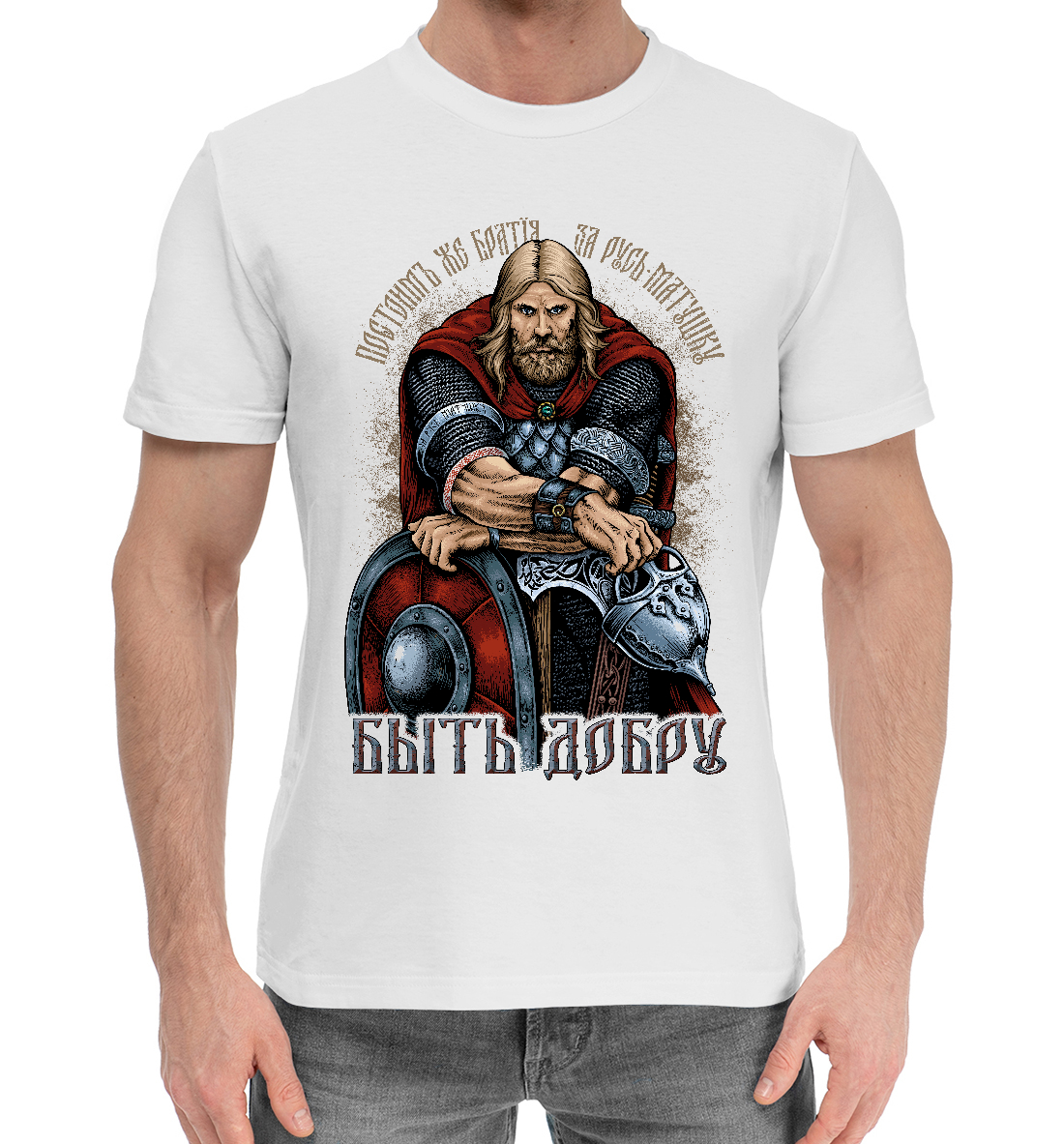 Мужская хлопковая футболка с принтом «Русский Воин (белый фон)»