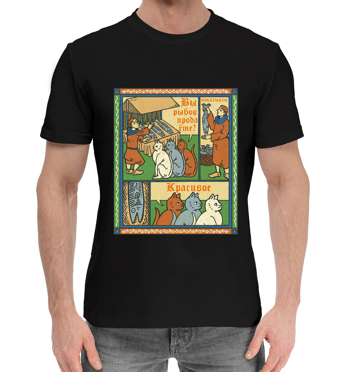 Мужская хлопковая футболка с принтом «Рыбов продаёте Красивое мем»