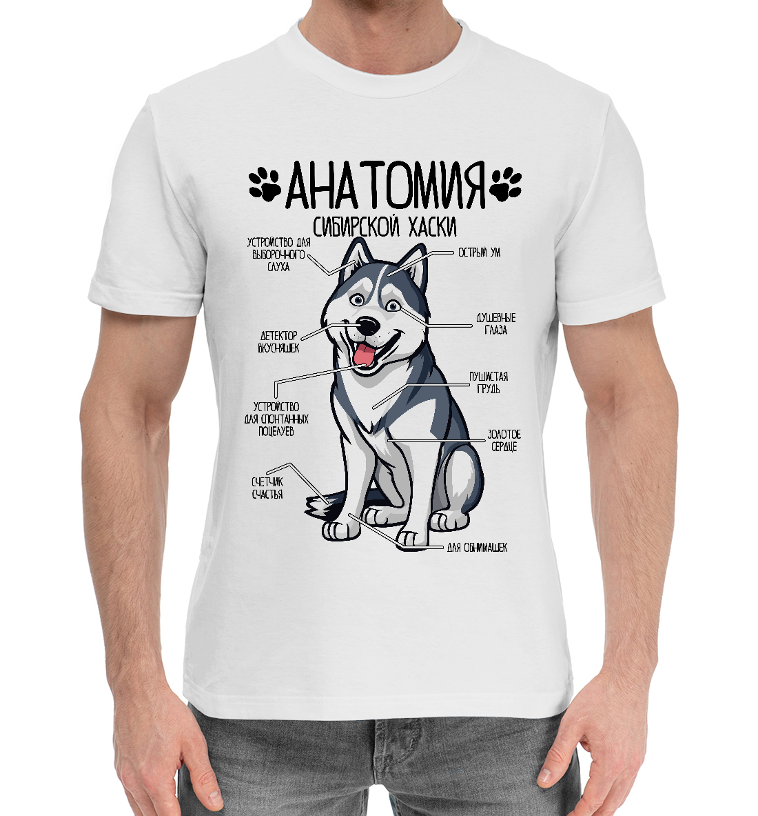 Мужская хлопковая футболка с принтом «Сибирский Хаски анатомия строение собаки»