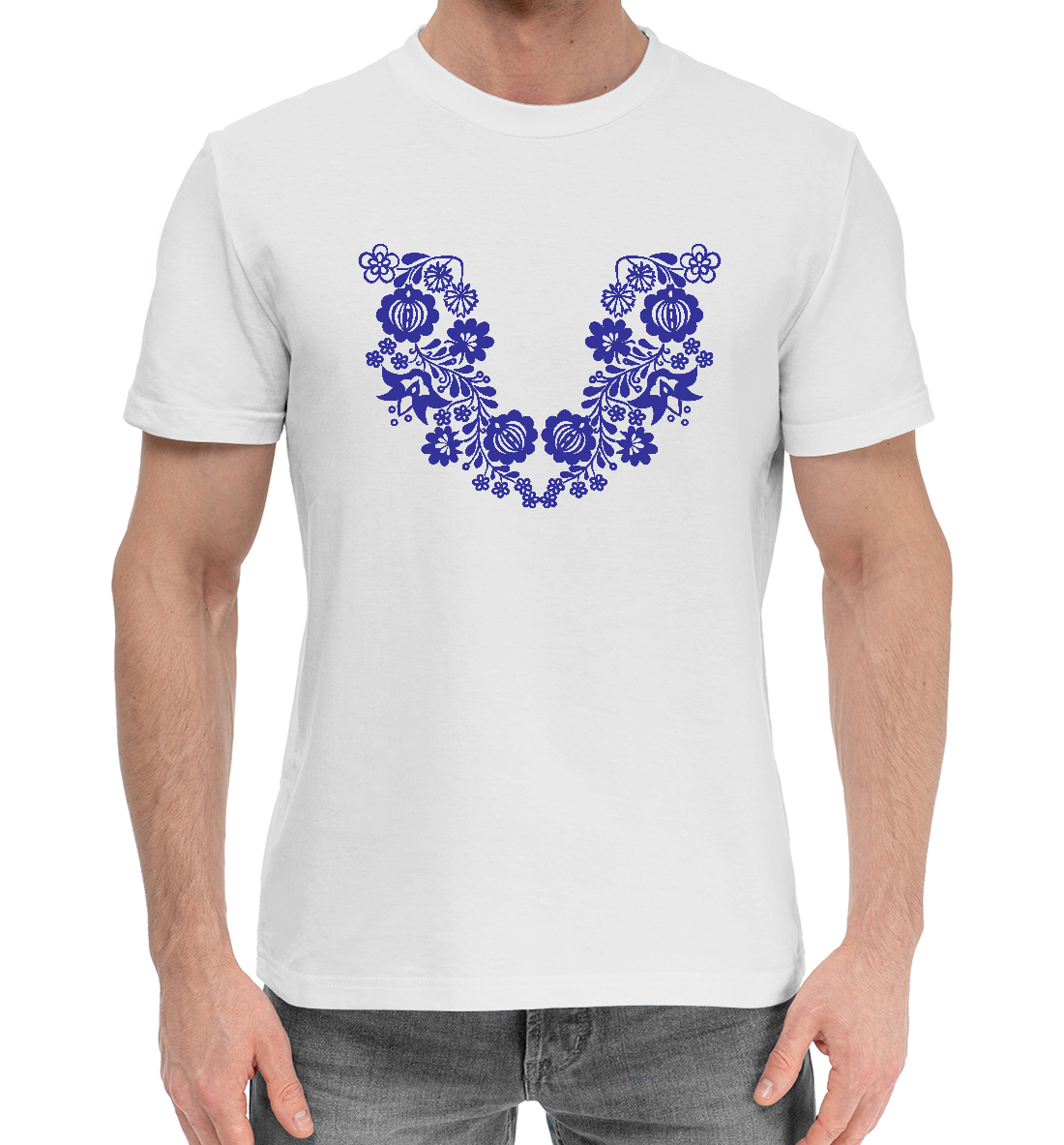 Мужская хлопковая футболка с принтом «Синий славянский узор»