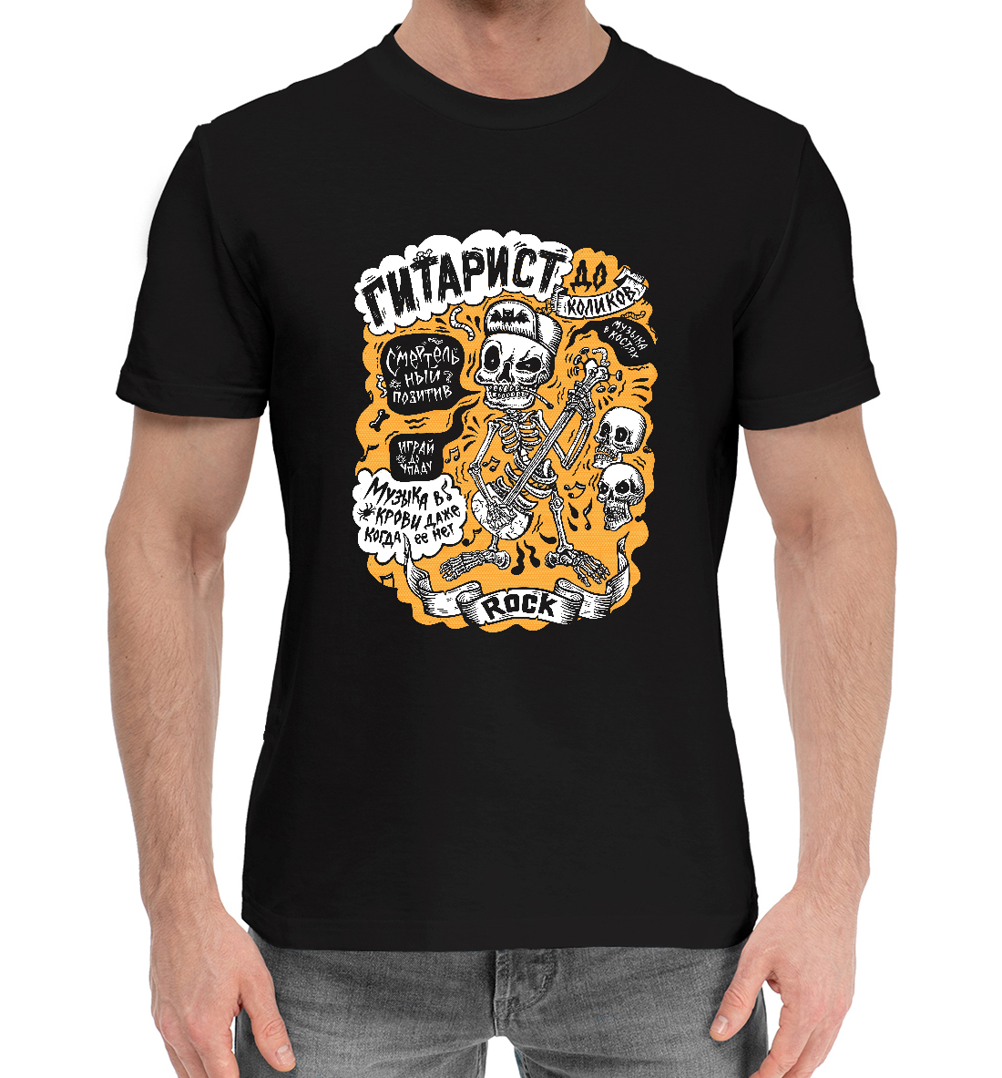 Мужская хлопковая футболка с принтом «Скелет гитарист с надписями»