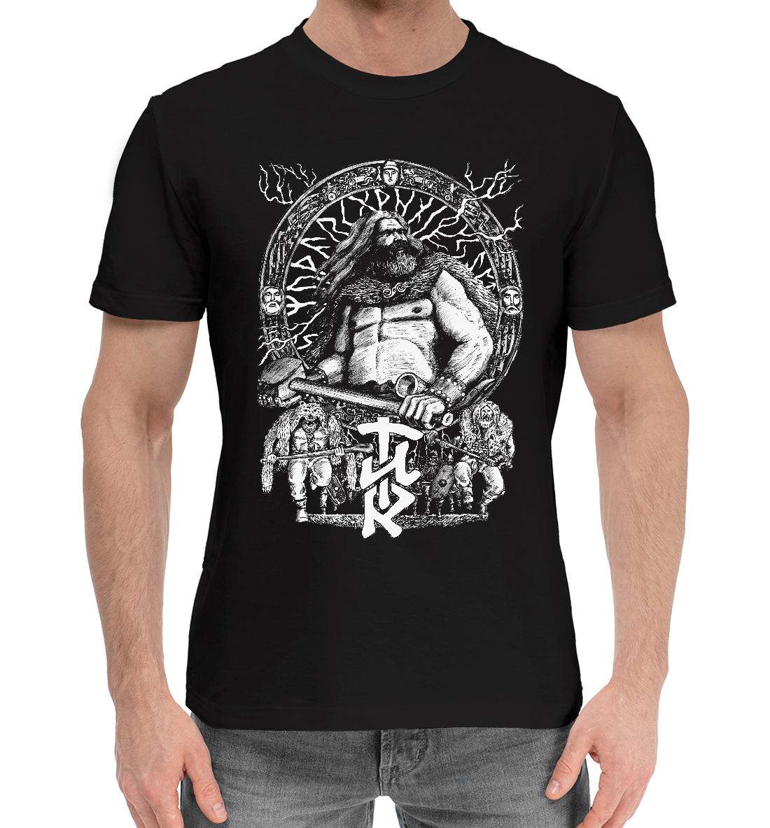 Мужская хлопковая футболка с принтом «Славянские Боги Перун и Велес»