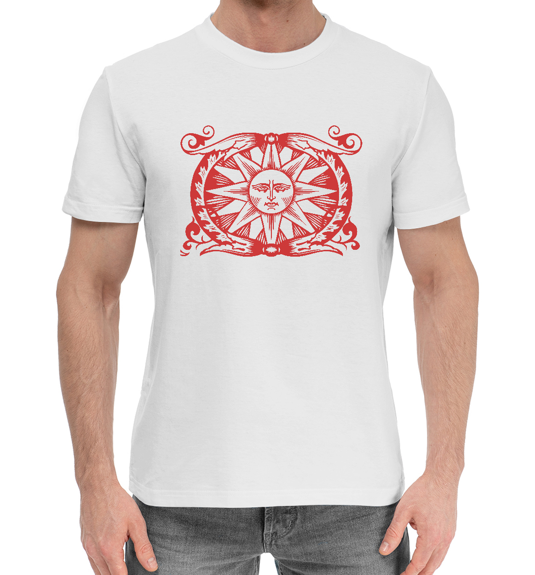 Мужская хлопковая футболка с принтом «Славянское Солнце»