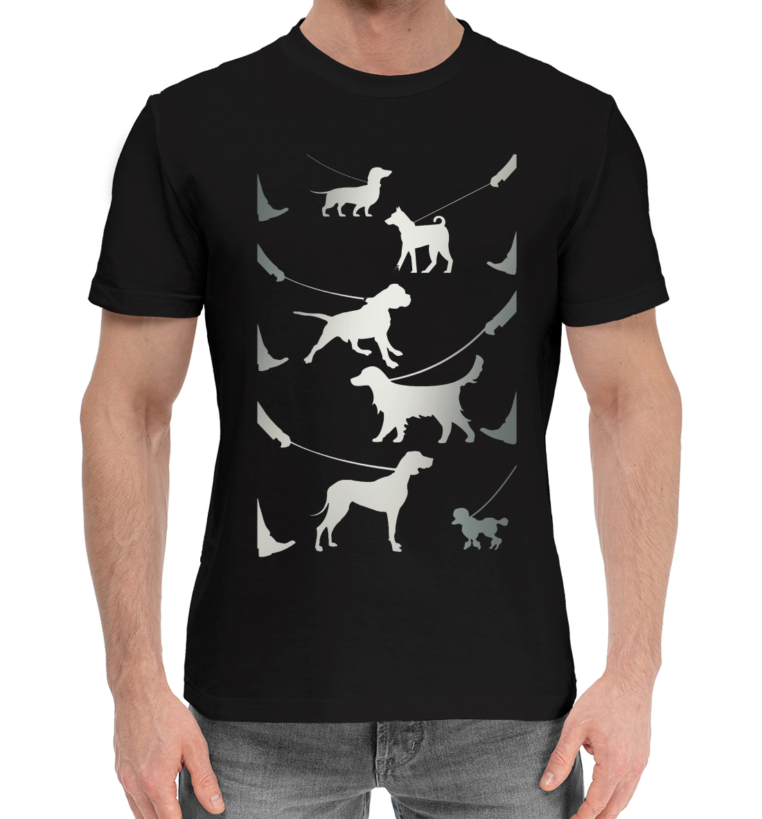 Мужская хлопковая футболка с принтом «Собаки на прогулке.»