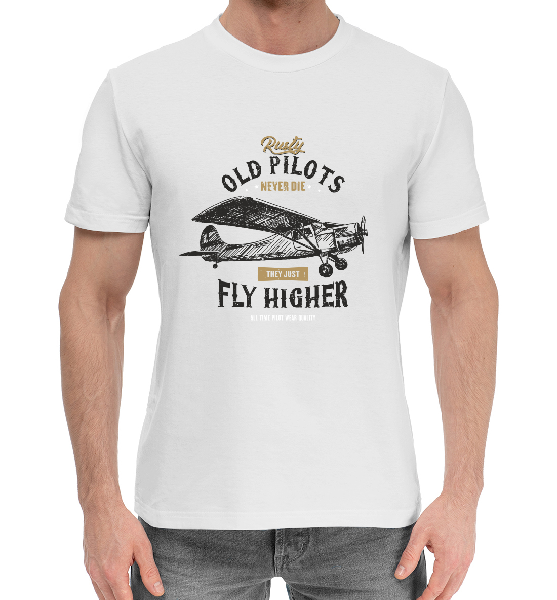 Мужская хлопковая футболка с принтом «Старые пилоты не умирают - они просто летают выше»