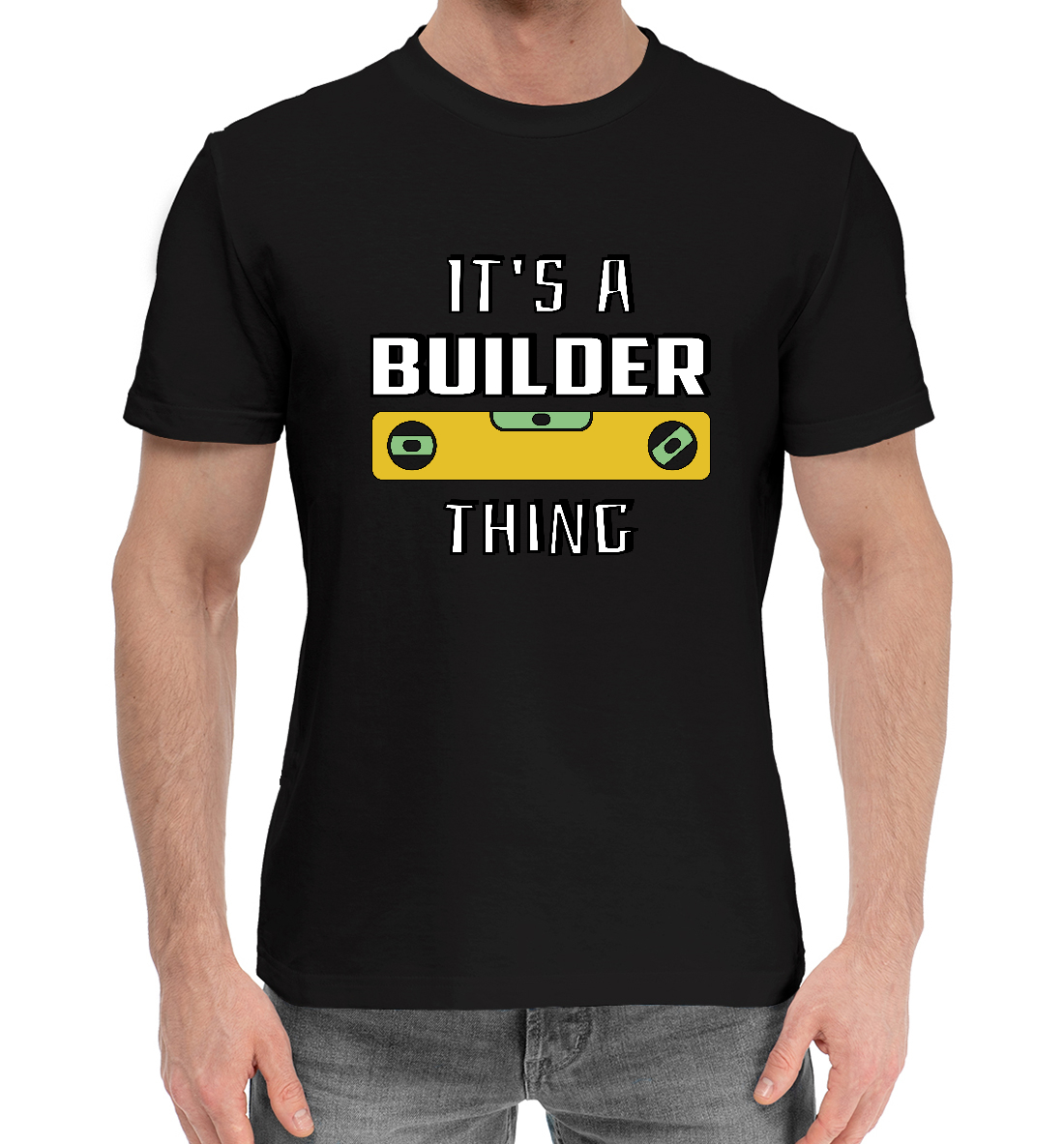 Мужская хлопковая футболка с принтом «Строитель»
