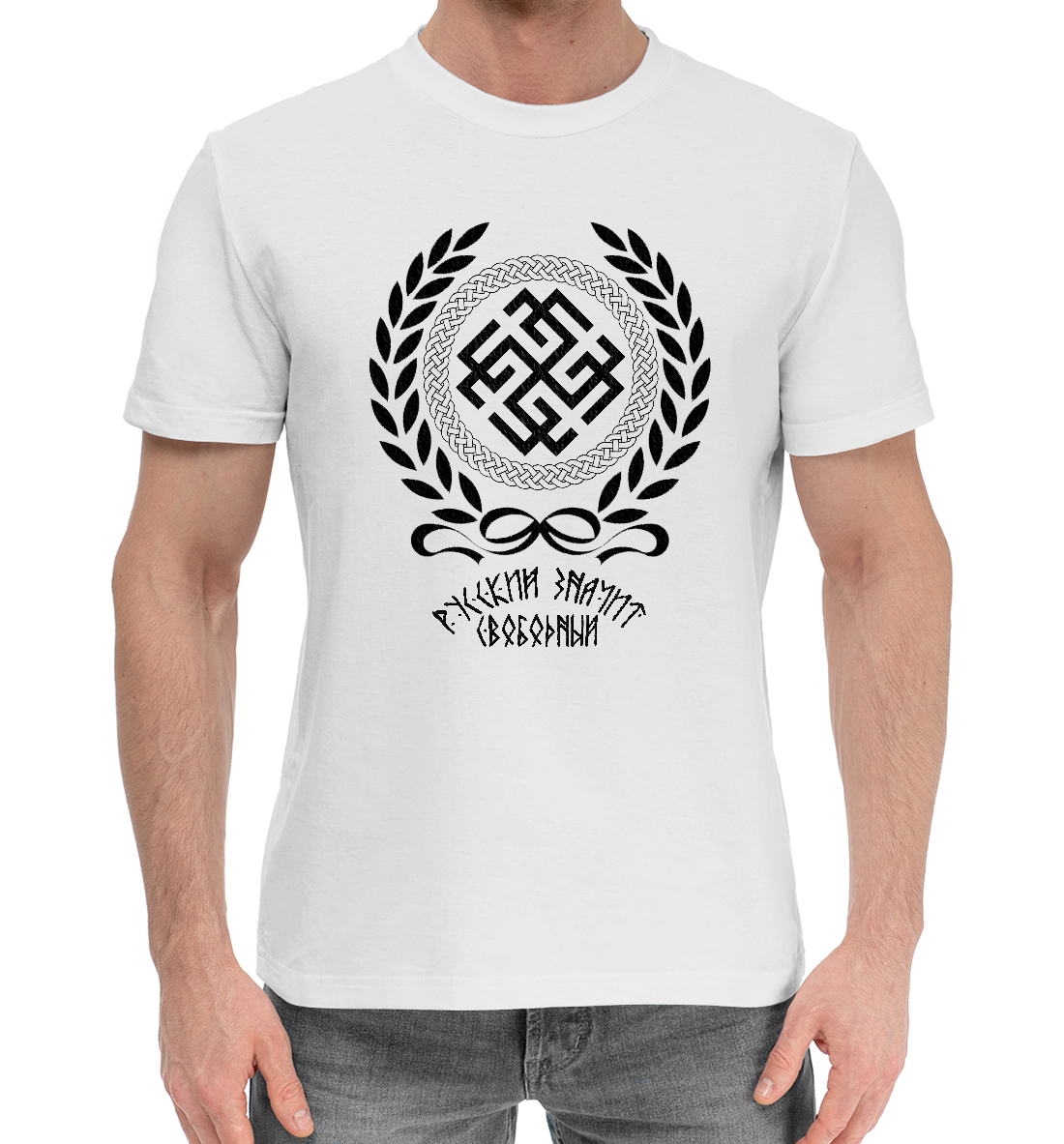 Мужская хлопковая футболка с принтом «Сварожич/Свободный русский»