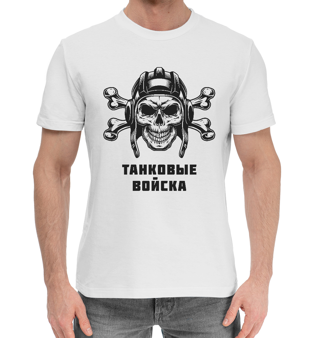 Мужская хлопковая футболка с принтом «ТАНКОВЫЕ ВОЙСКА (Череп и Кости)»