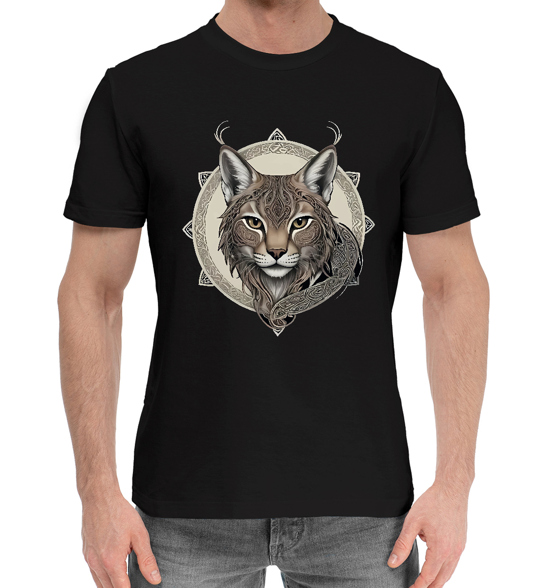Мужская хлопковая футболка с принтом «Тотем славян Рысь в кельтском стиле»