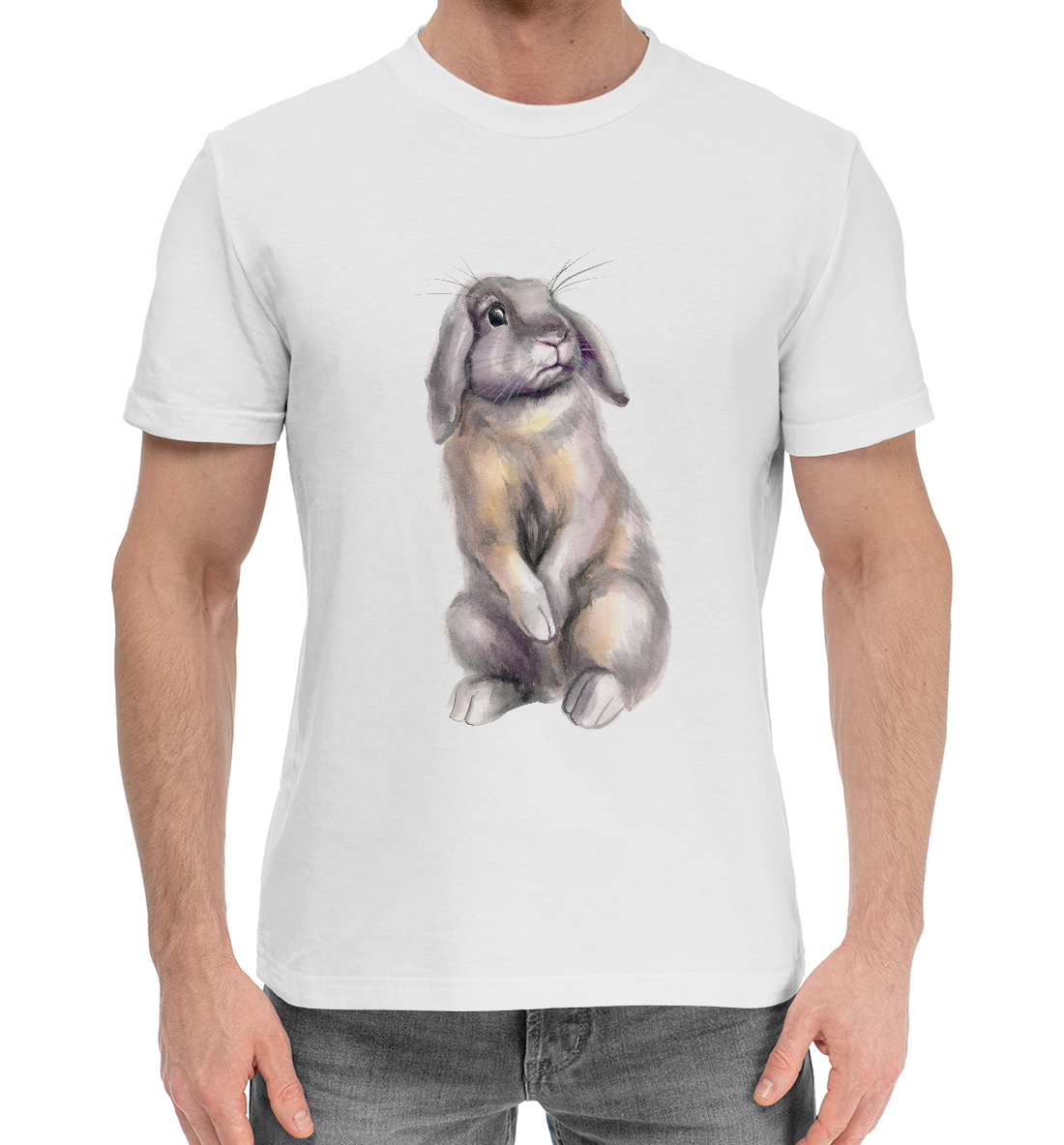 Мужская хлопковая футболка с принтом «Удивленный кролик»