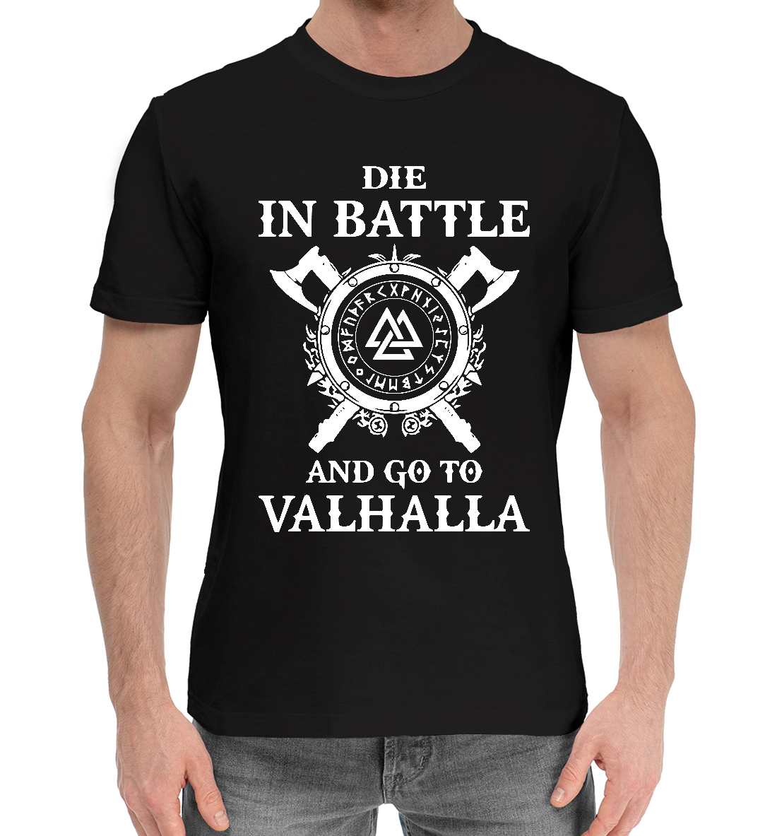 Мужская хлопковая футболка с принтом «Валькнут Одина»