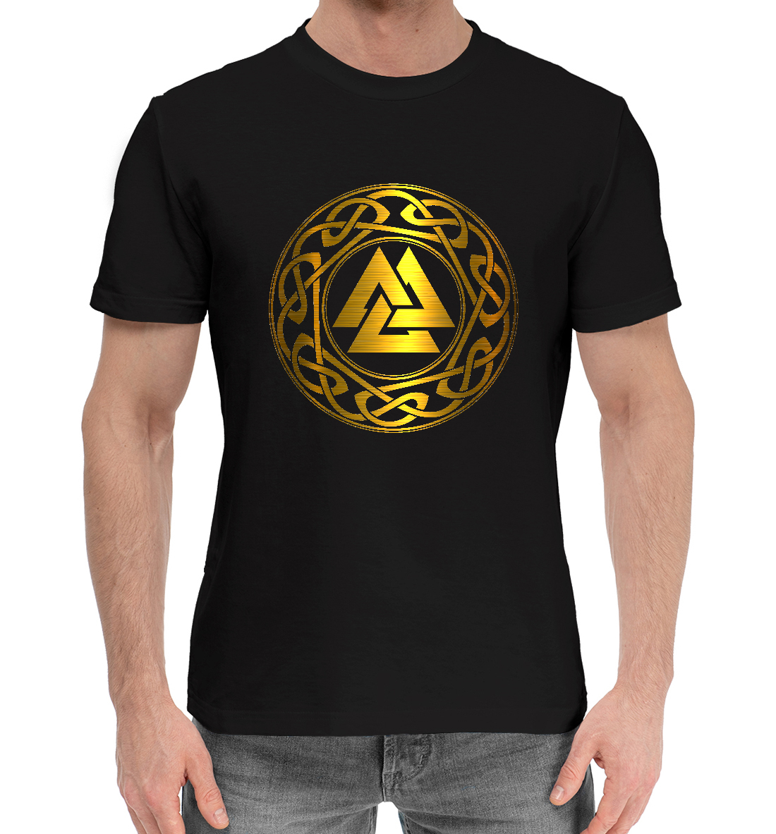Мужская хлопковая футболка с принтом «Валькнут символ бога Одина»