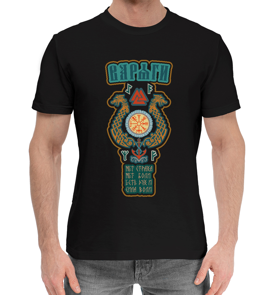Мужская хлопковая футболка с принтом «Варяги Руси»