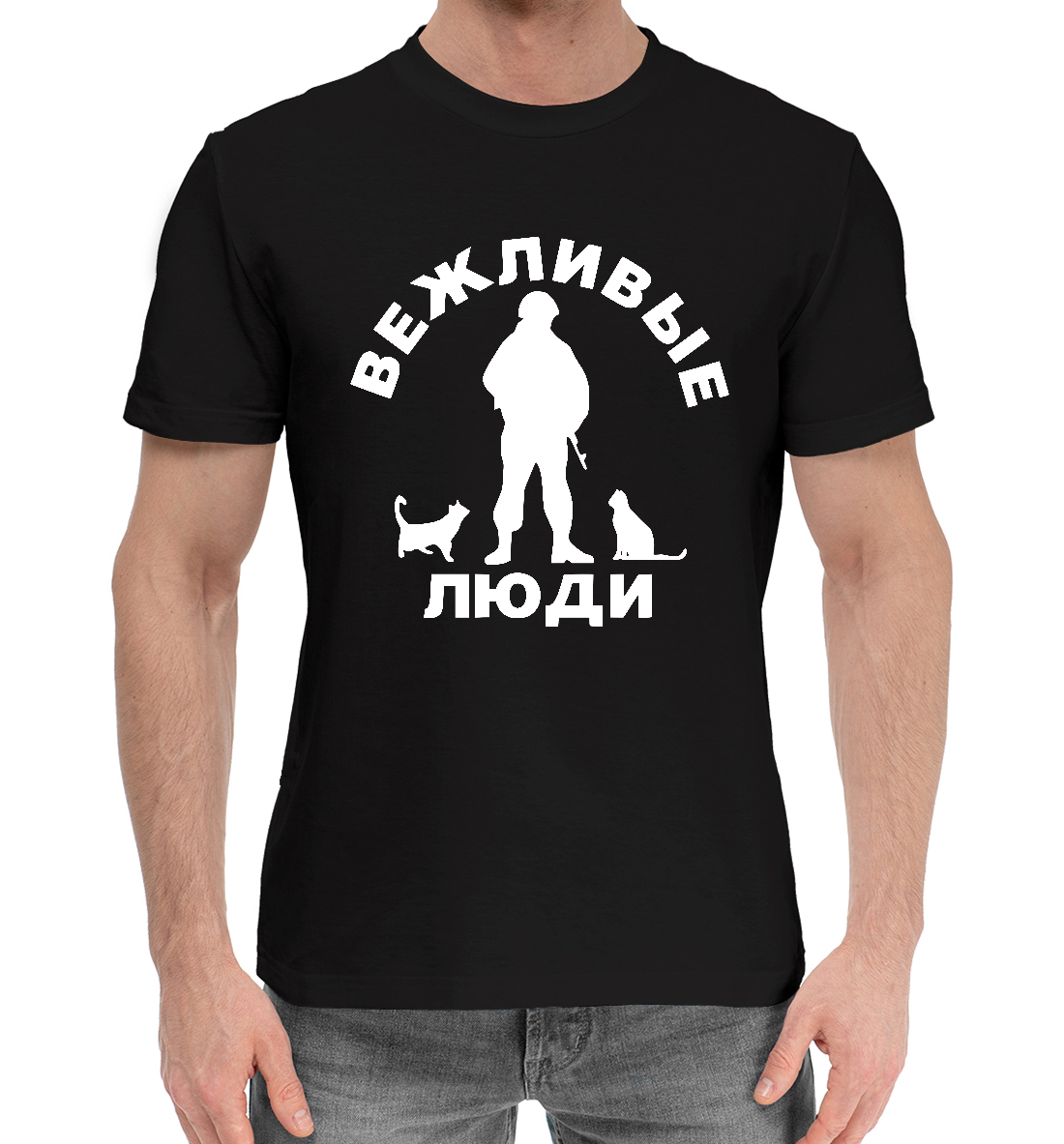 Мужская хлопковая футболка с принтом «Вежливые люди (силуэт)»