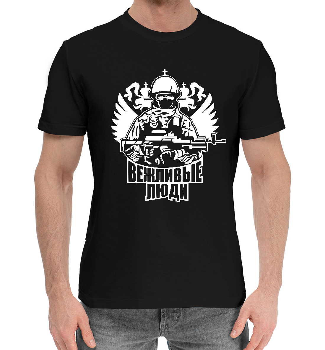 Мужская хлопковая футболка с принтом «Вежливые люди (солдат)»