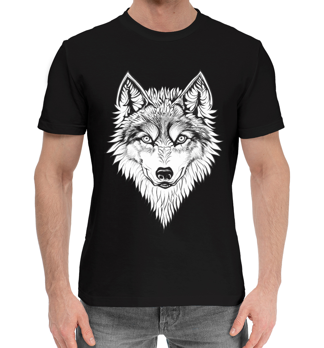 Мужская хлопковая футболка с принтом «Волчий мотив»