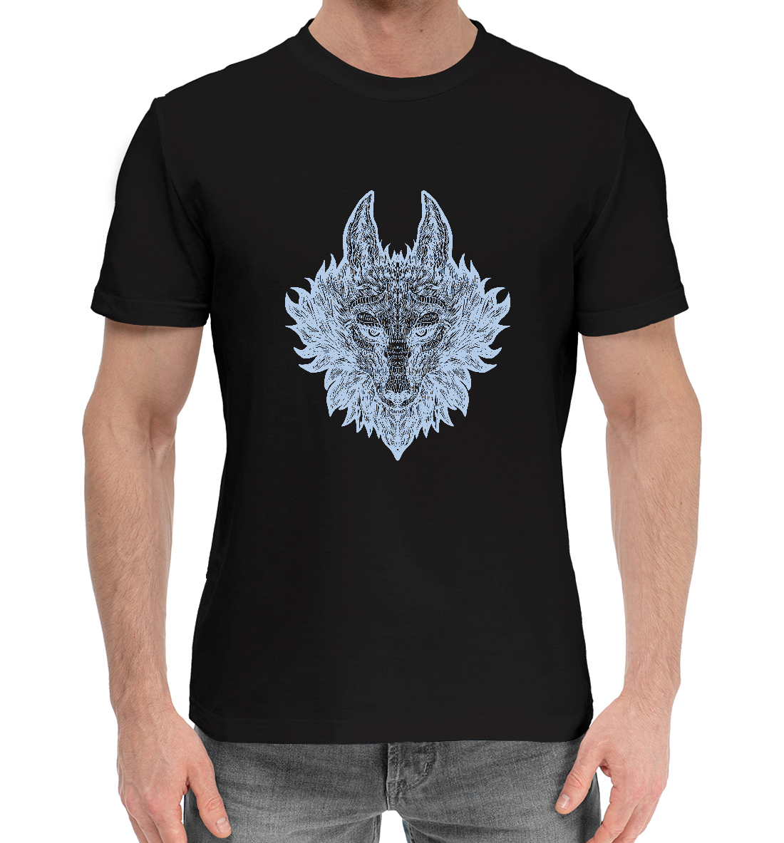 Мужская хлопковая футболка с принтом «Волк (blue)»