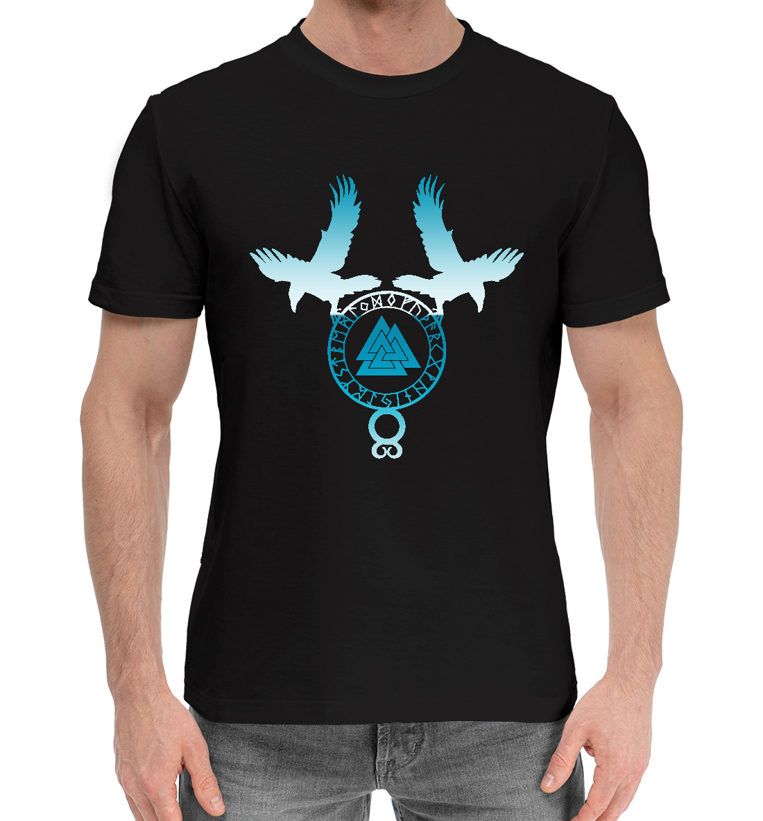 Мужская хлопковая футболка с принтом «Вороны Одина»