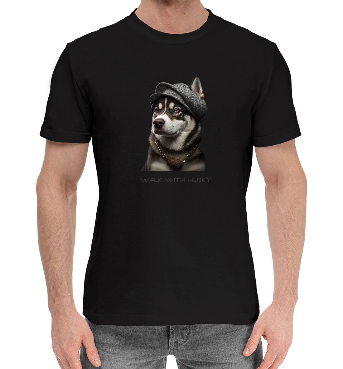 Мужская хлопковая футболка с принтом «WALK WITH HUSKY»