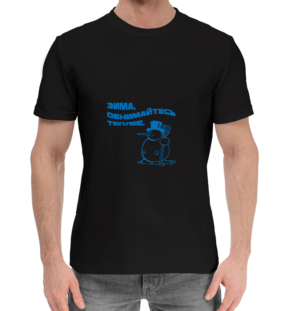 Мужская хлопковая футболка с принтом «Зима, обнимайтесь теплее.»
