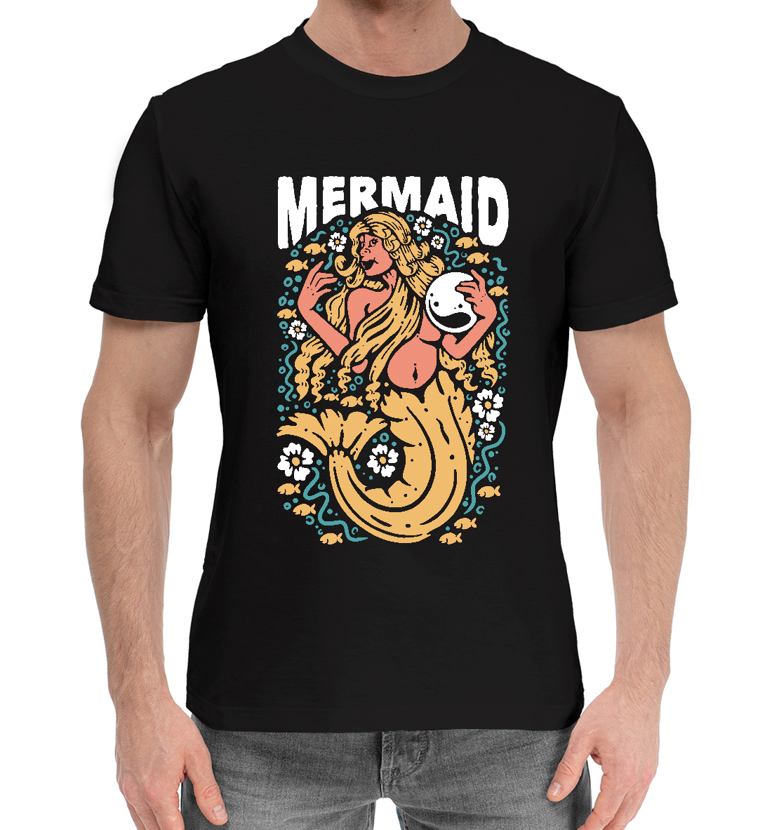Мужская хлопковая футболка с принтом «Златовласая Русалочка»