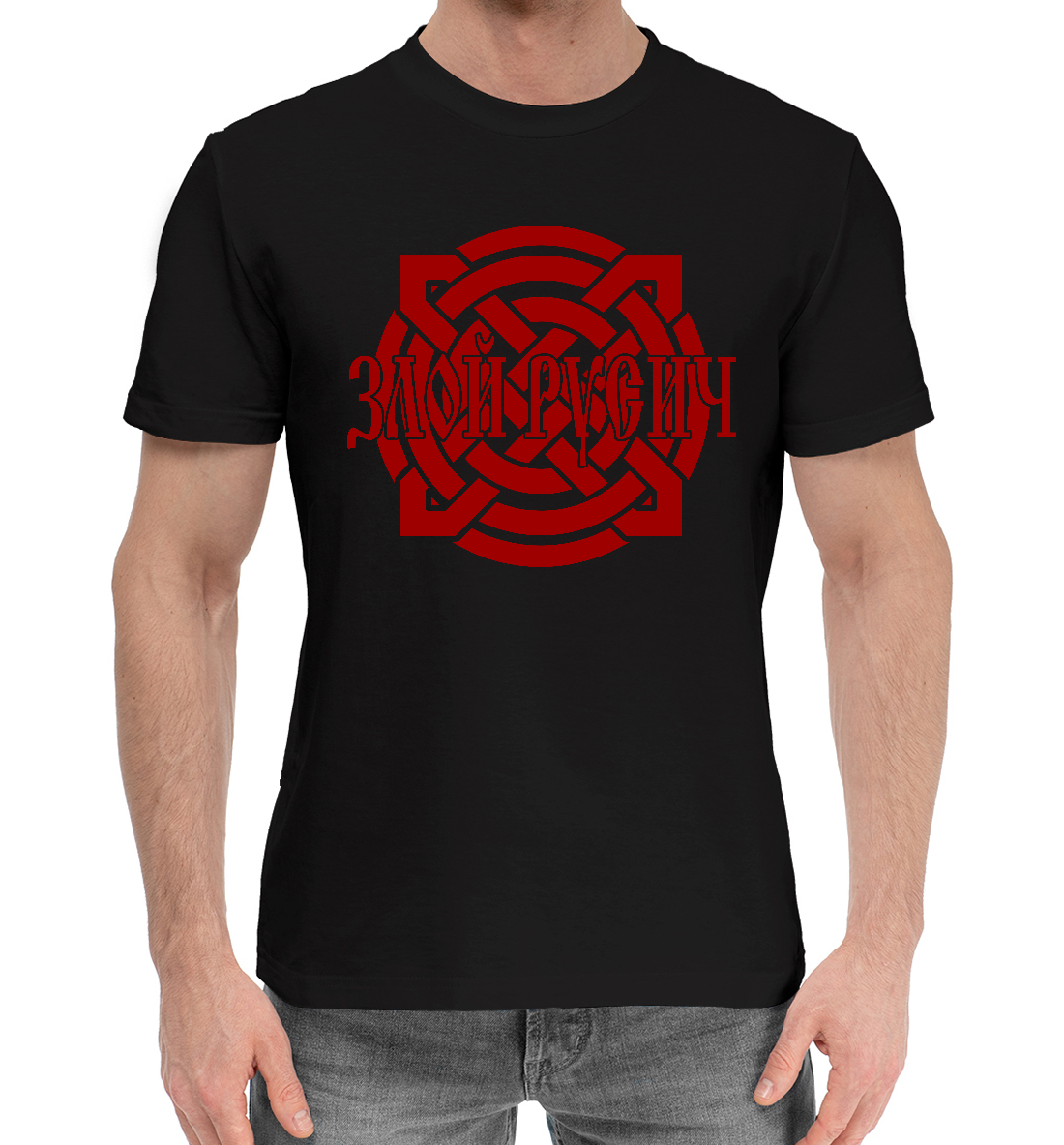 Мужская хлопковая футболка с принтом «Злой русич в символе воина»