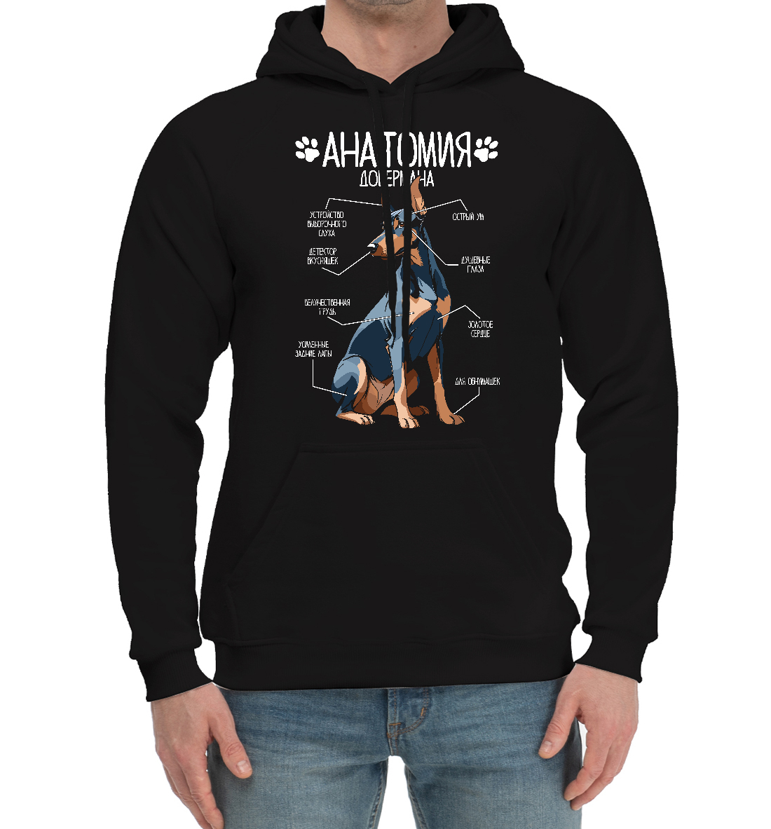 Мужской хлопковый худи с принтом «Анатомия добермана, черный»