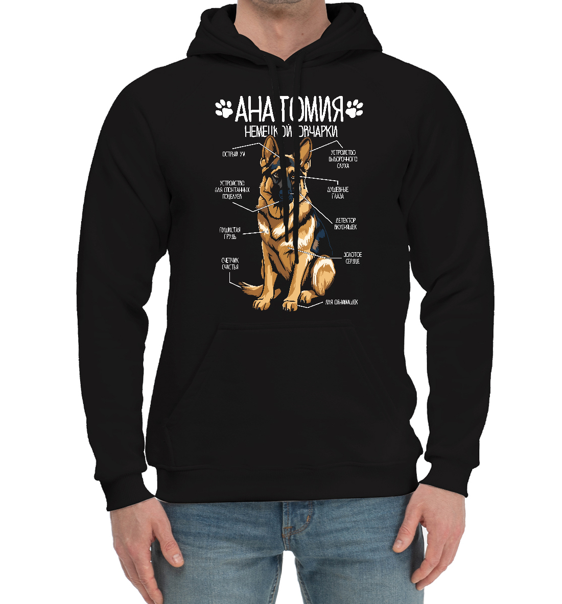Мужской хлопковый худи с принтом «Анатомия немецкой овчарки»