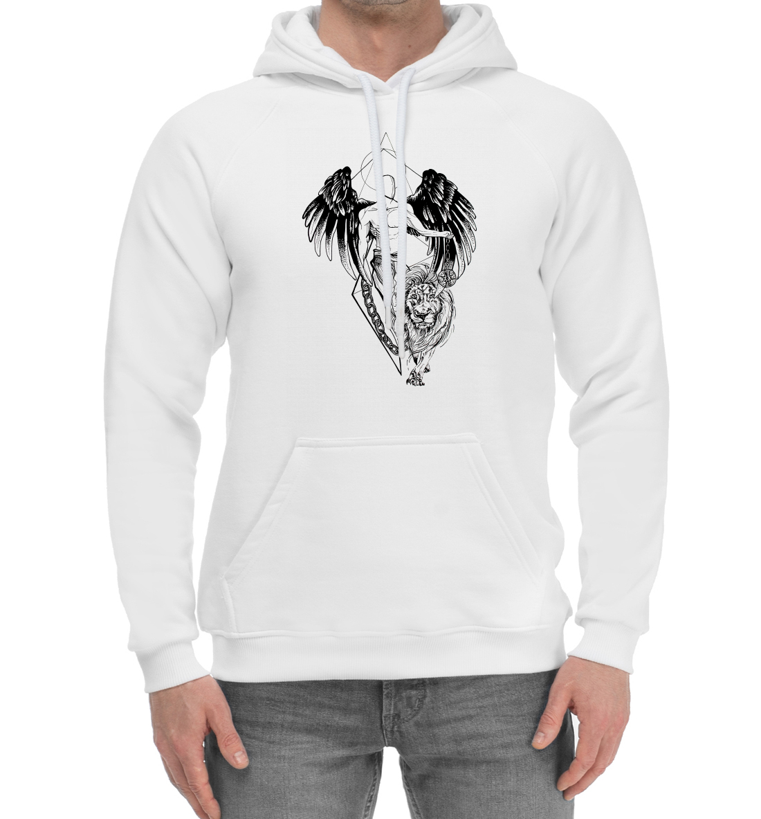 Мужской хлопковый худи с принтом «Ангел и лев»