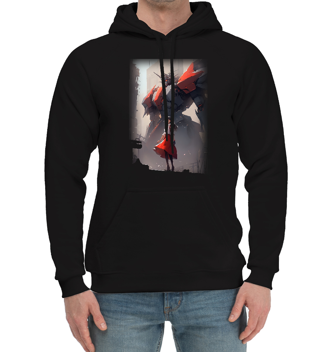 Мужской хлопковый худи с принтом «Аниме девушка с роботом»