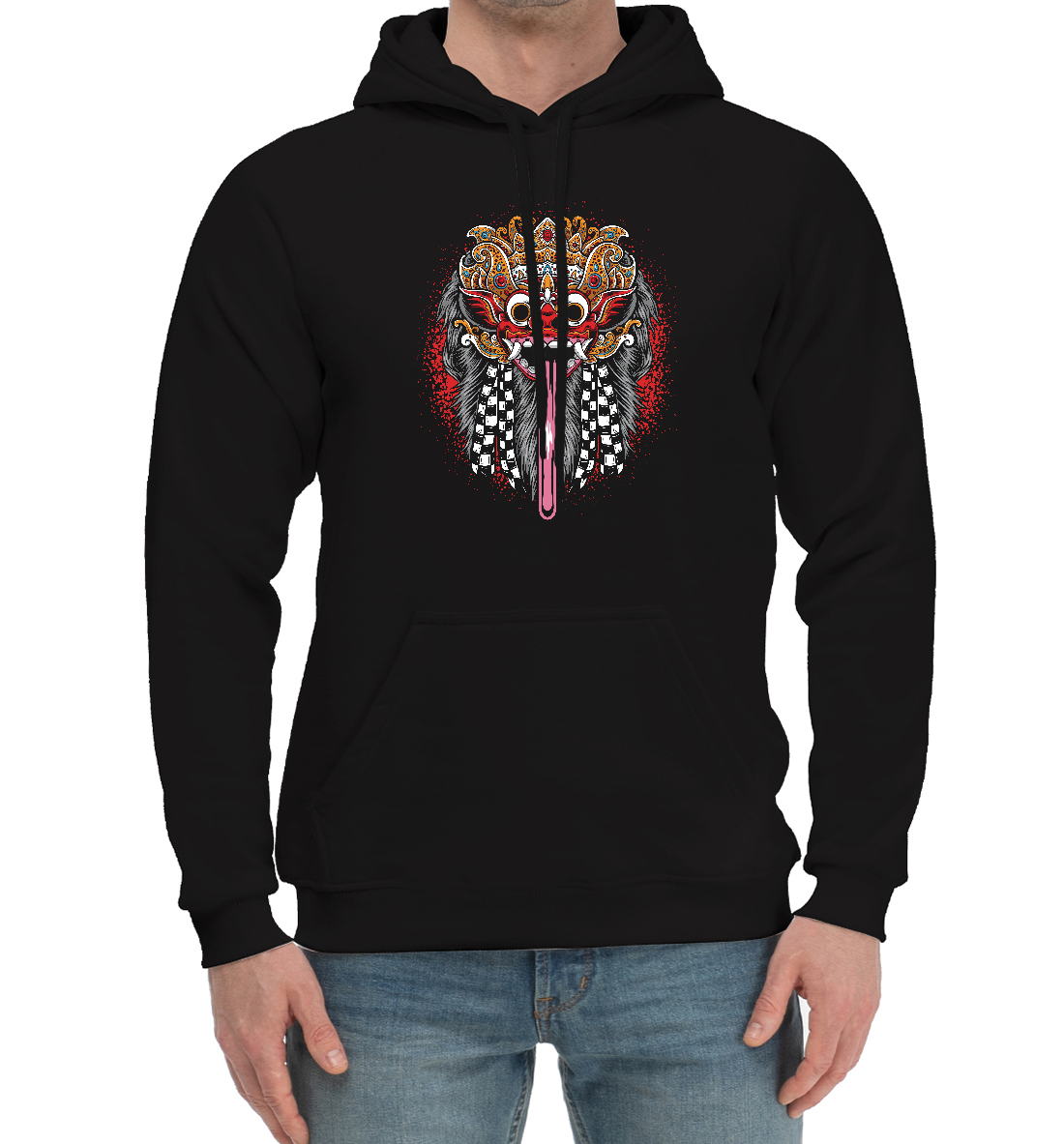 Мужской хлопковый худи с принтом «Азиатская Маска»