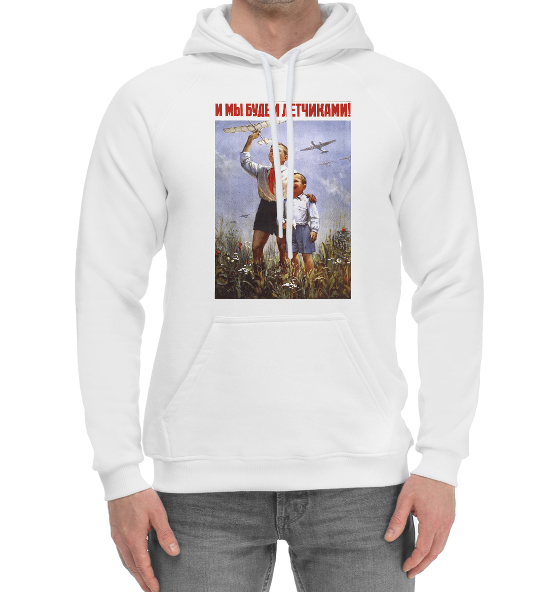 Мужской хлопковый худи с принтом «Будем лётчиками»