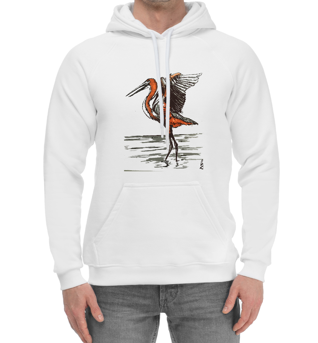 Мужской хлопковый худи с принтом «Цапля на воде»