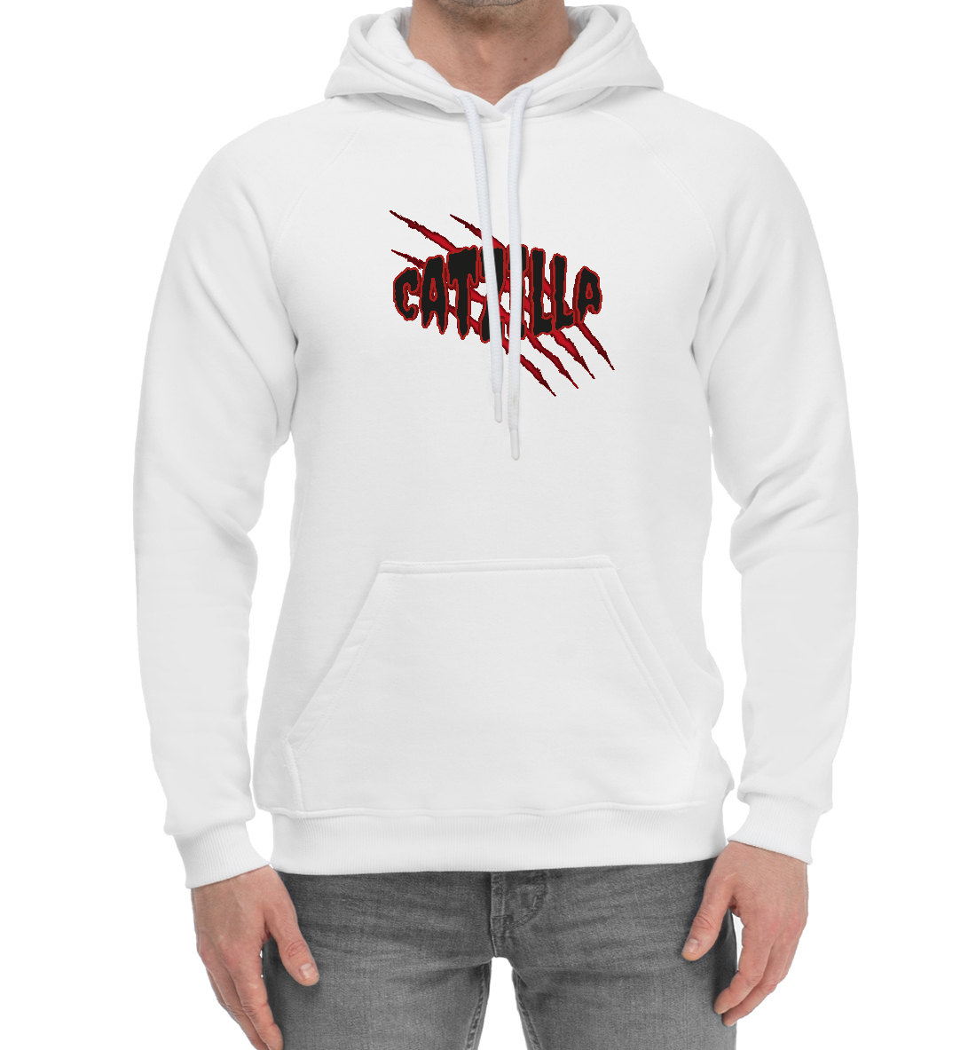 Мужской хлопковый худи с принтом «Catzilla с когтями»