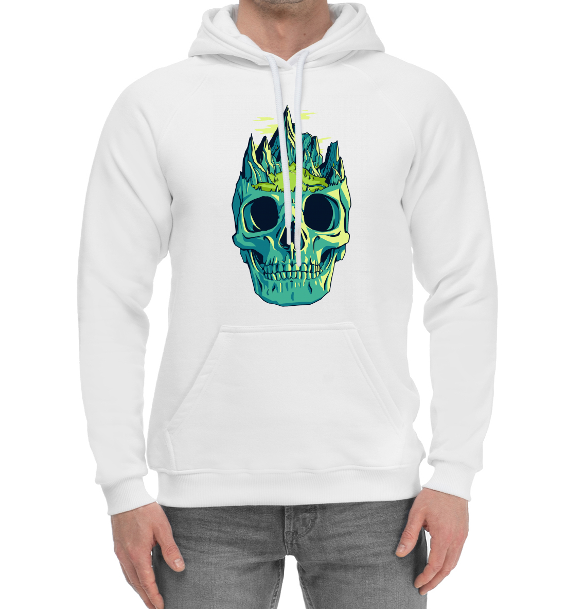 Мужской хлопковый худи с принтом «Череп с Горами»