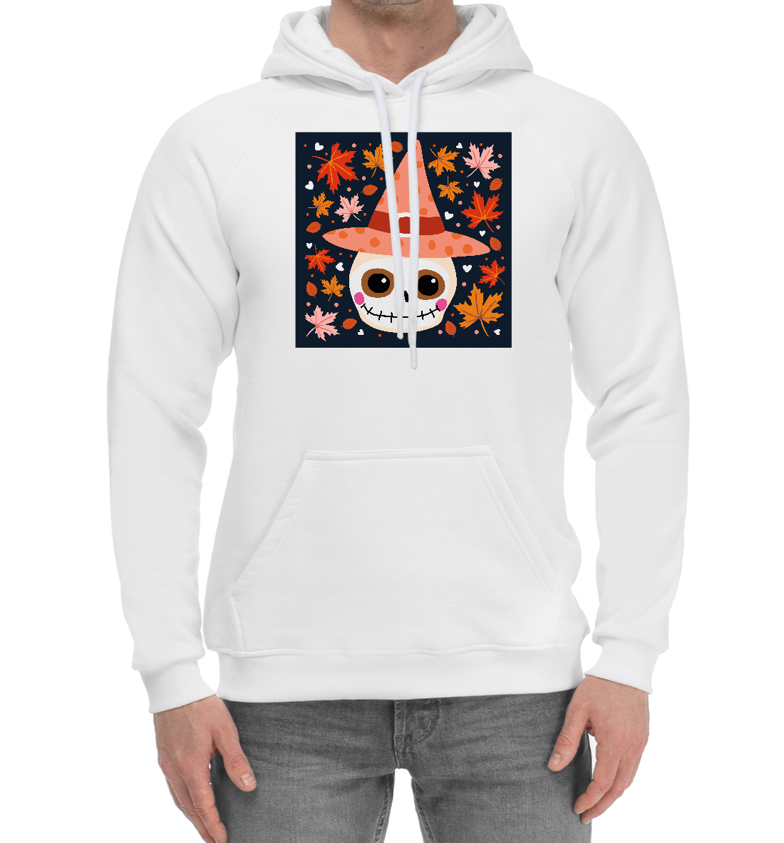 Мужской хлопковый худи с принтом «Череп в шляпе ведьмы»