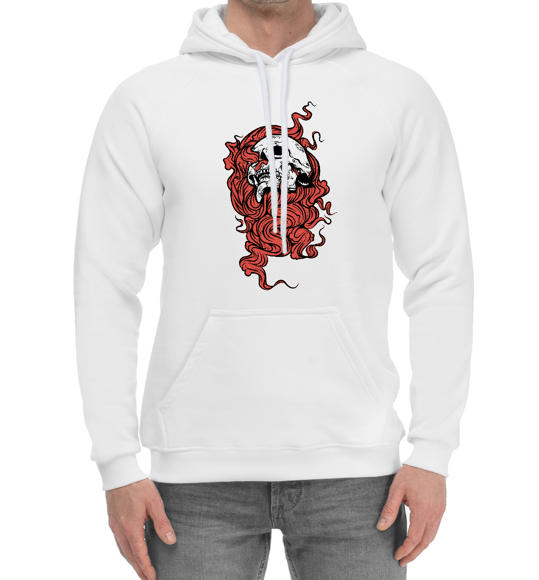 Мужской хлопковый худи с принтом «Череп волокна красного цвета»