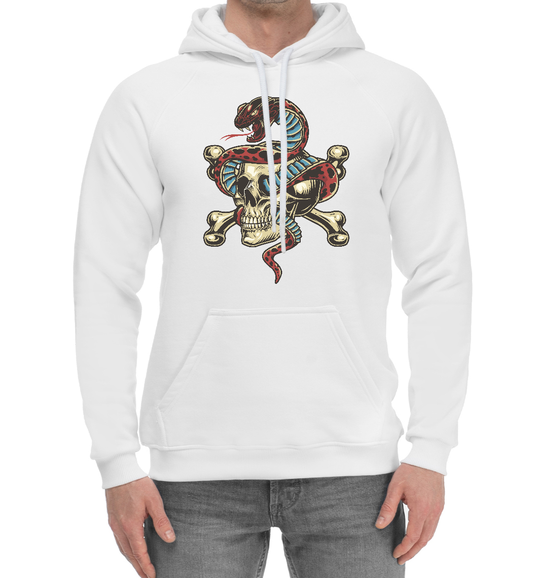 Мужской хлопковый худи с принтом «Череп змей»