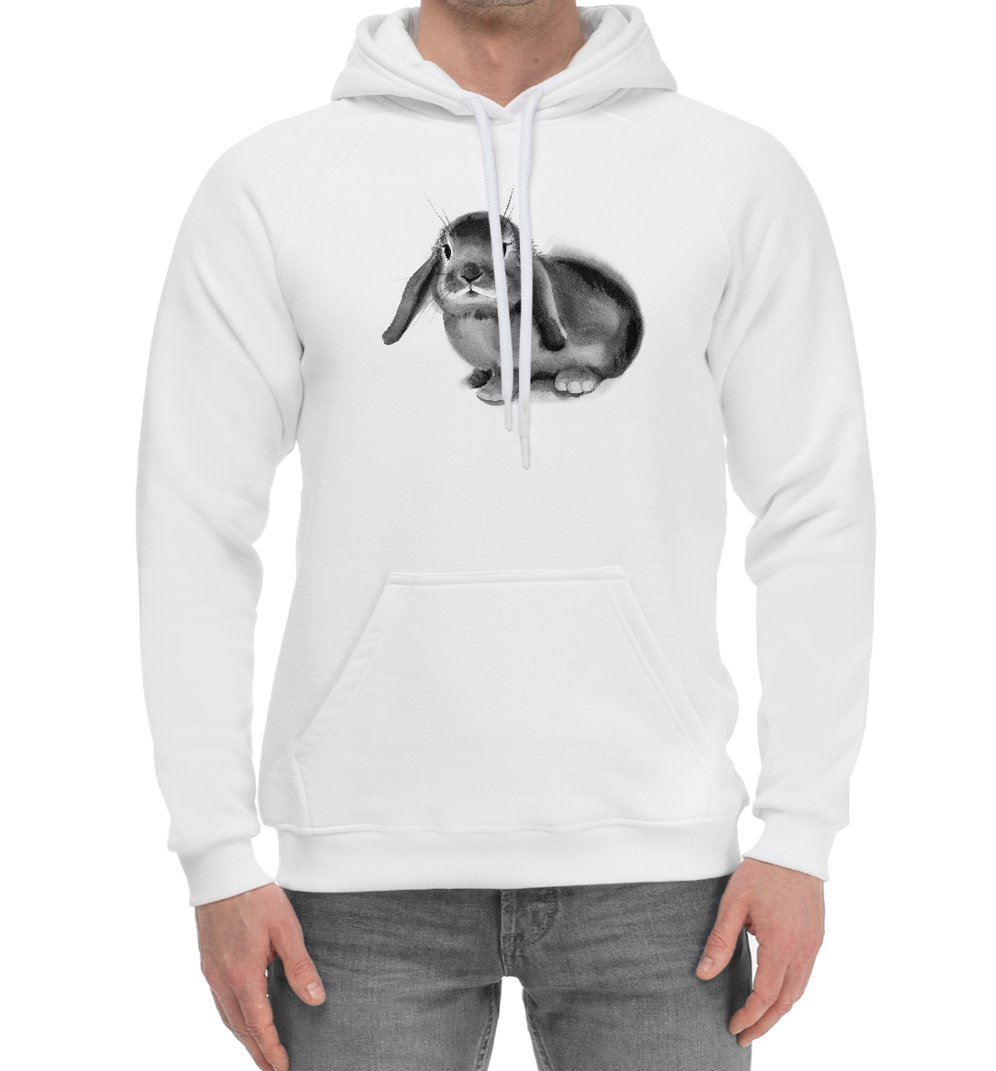 Мужской хлопковый худи с принтом «Черный кролик Банни»