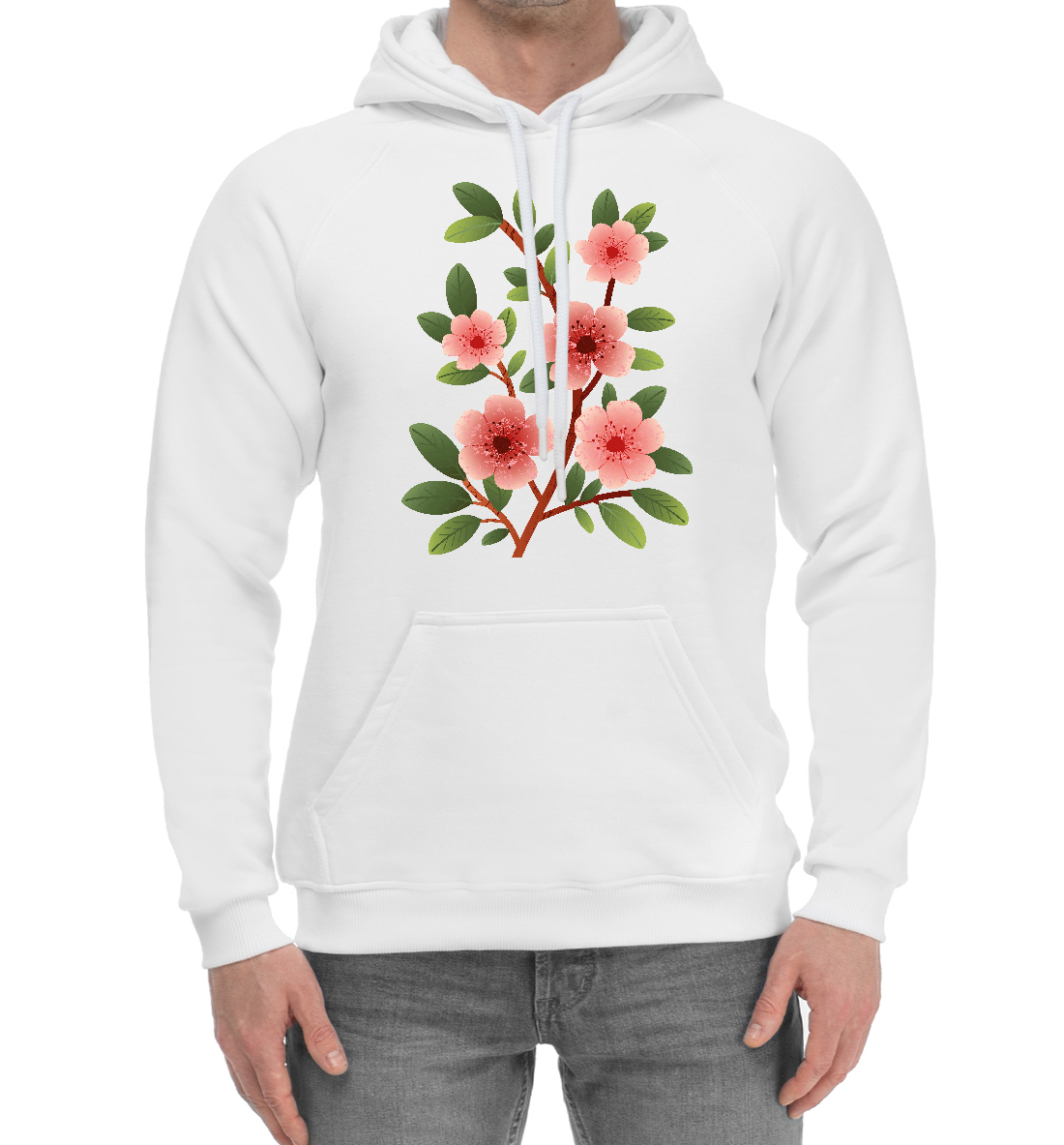 Мужской хлопковый худи с принтом «Цветущая ветка с листьями»