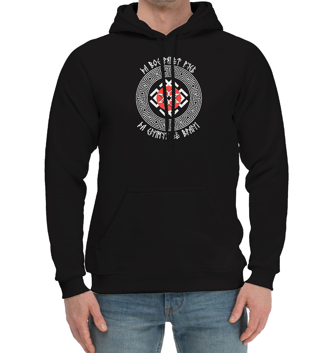 Мужской хлопковый худи с принтом «Да воспрянет Русь!»