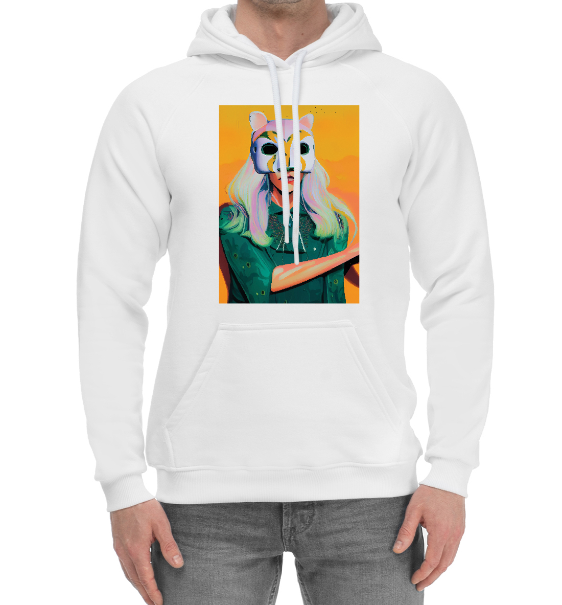 Мужской хлопковый худи с принтом «Девушка в маске»