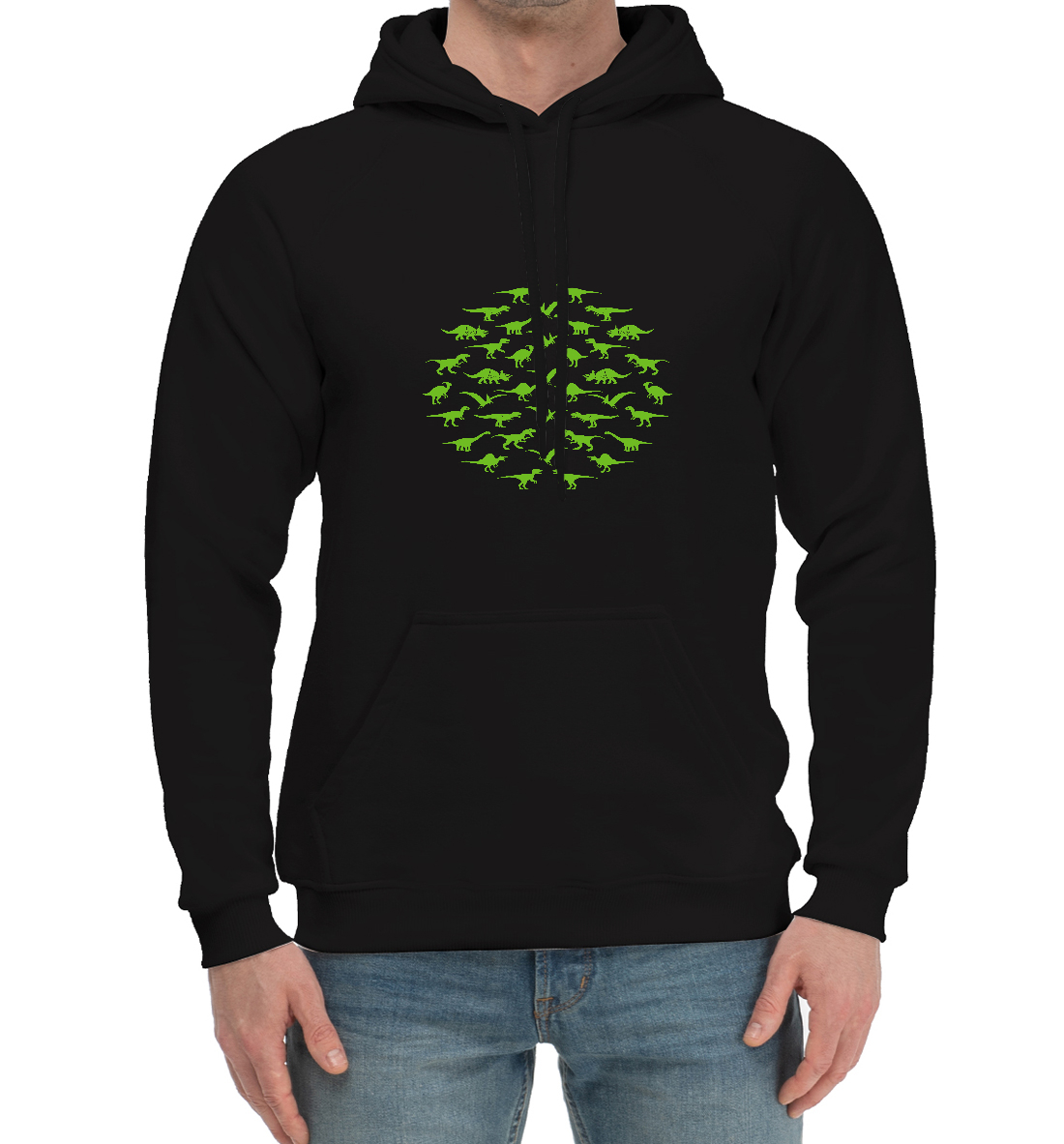 Мужской хлопковый худи с принтом «Динозавры (силуэты)»